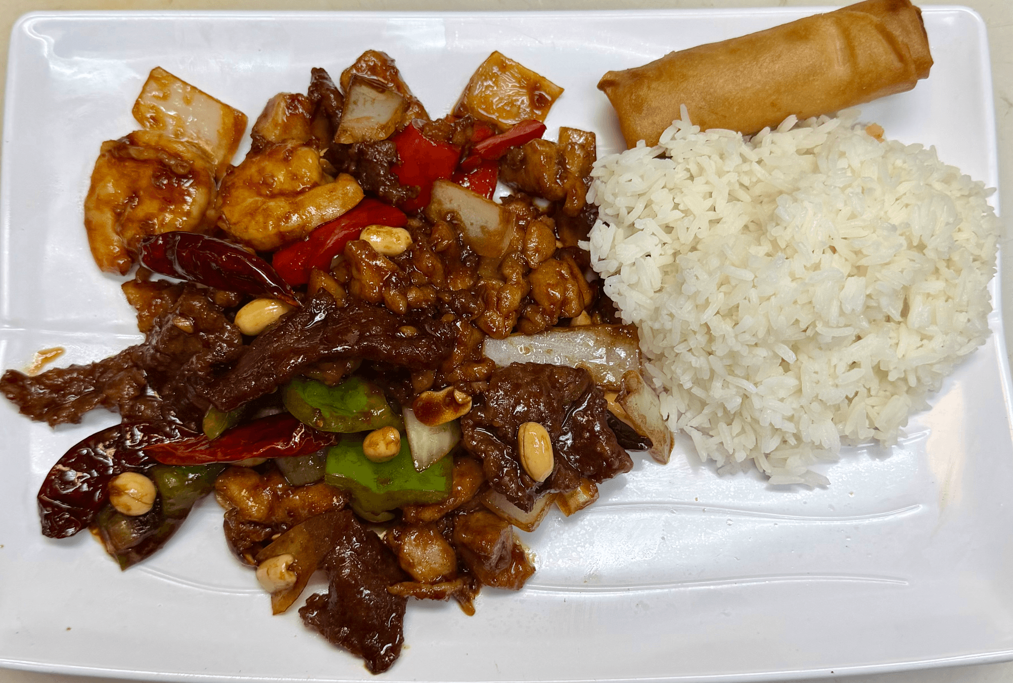 Signature of Go China. Combination of beef, chicken, shrimp and egg with a touch of spiciness
