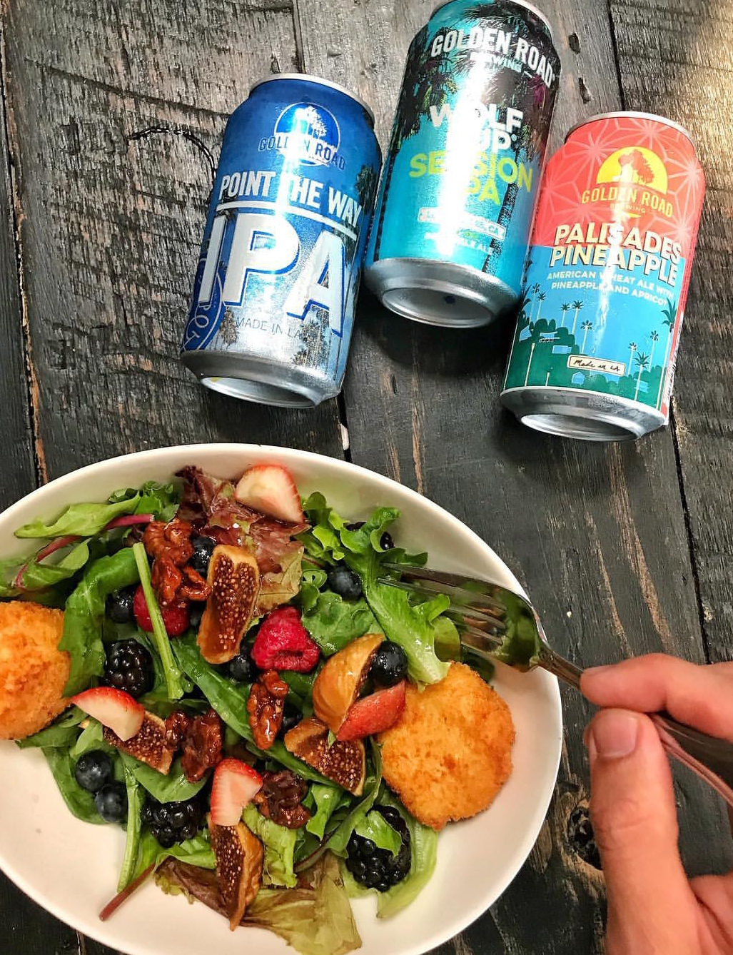 Fig and Fresh Berries Salad with Organic Mixed Greens, Candied Walnuts, Warm Crispy Goat Cheese and Vanilla Bean Vinaigrette +add grilled chicken breast $3
